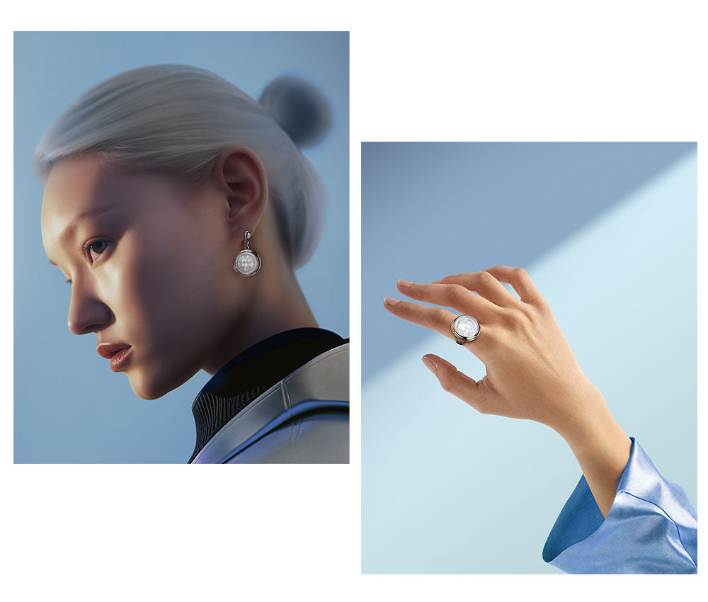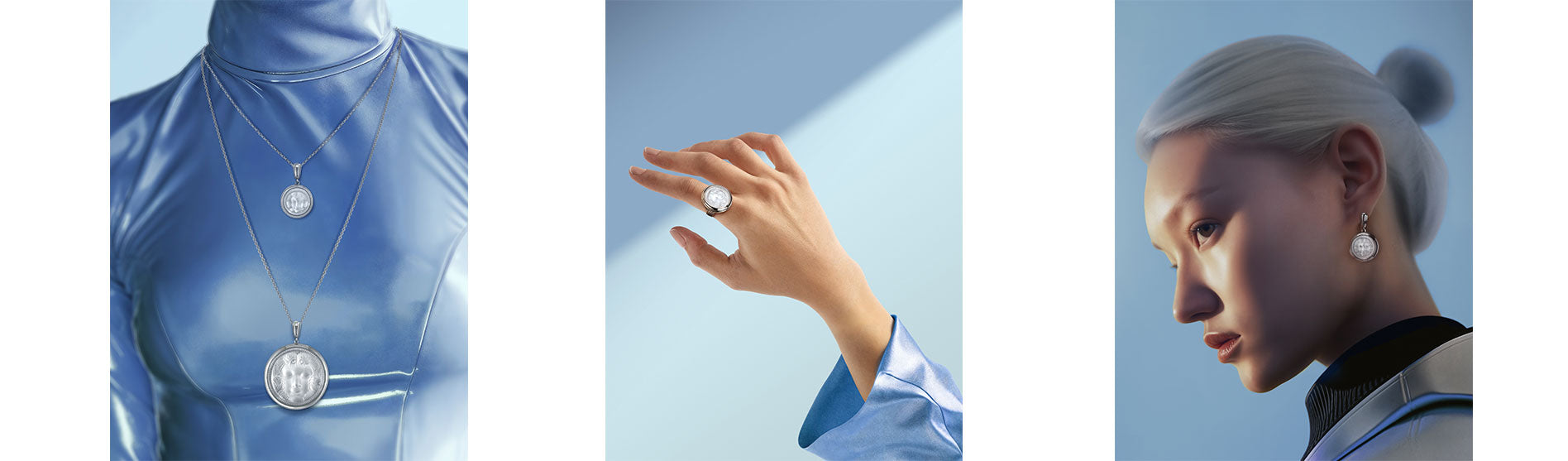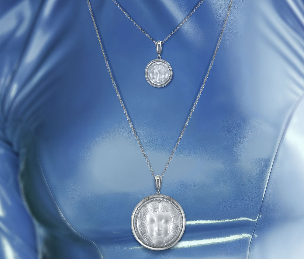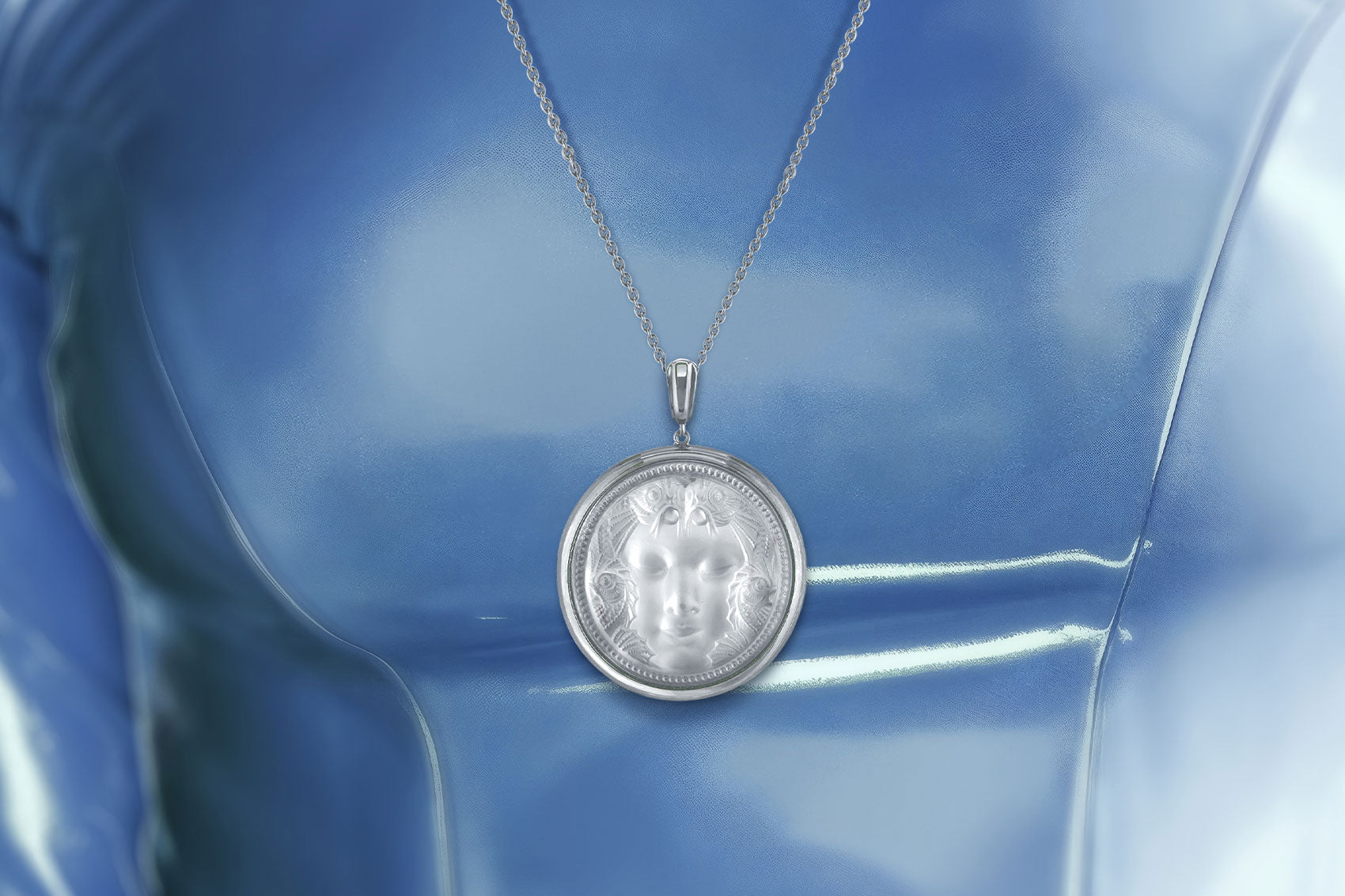 Iconique absolu en forme carré, le motif Aréthuse se réinvente dans un médaillon de cristal. Dans un style néoclassique, les montures en argent aux lignes simples et pures subliment les cristaux pour incarner une nouvelle modernité.