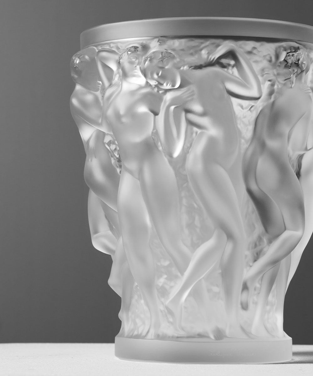 René Lalique's Bacchantes embody charm and gentleness. Ecstatic, they undulate, intertwined in the grace and sensuality emblematic of Lalique's artistic signature. Voluptuous curves, captivating beauty, the Bacchantes vase is a timeless piece of Lalique’s heritage.