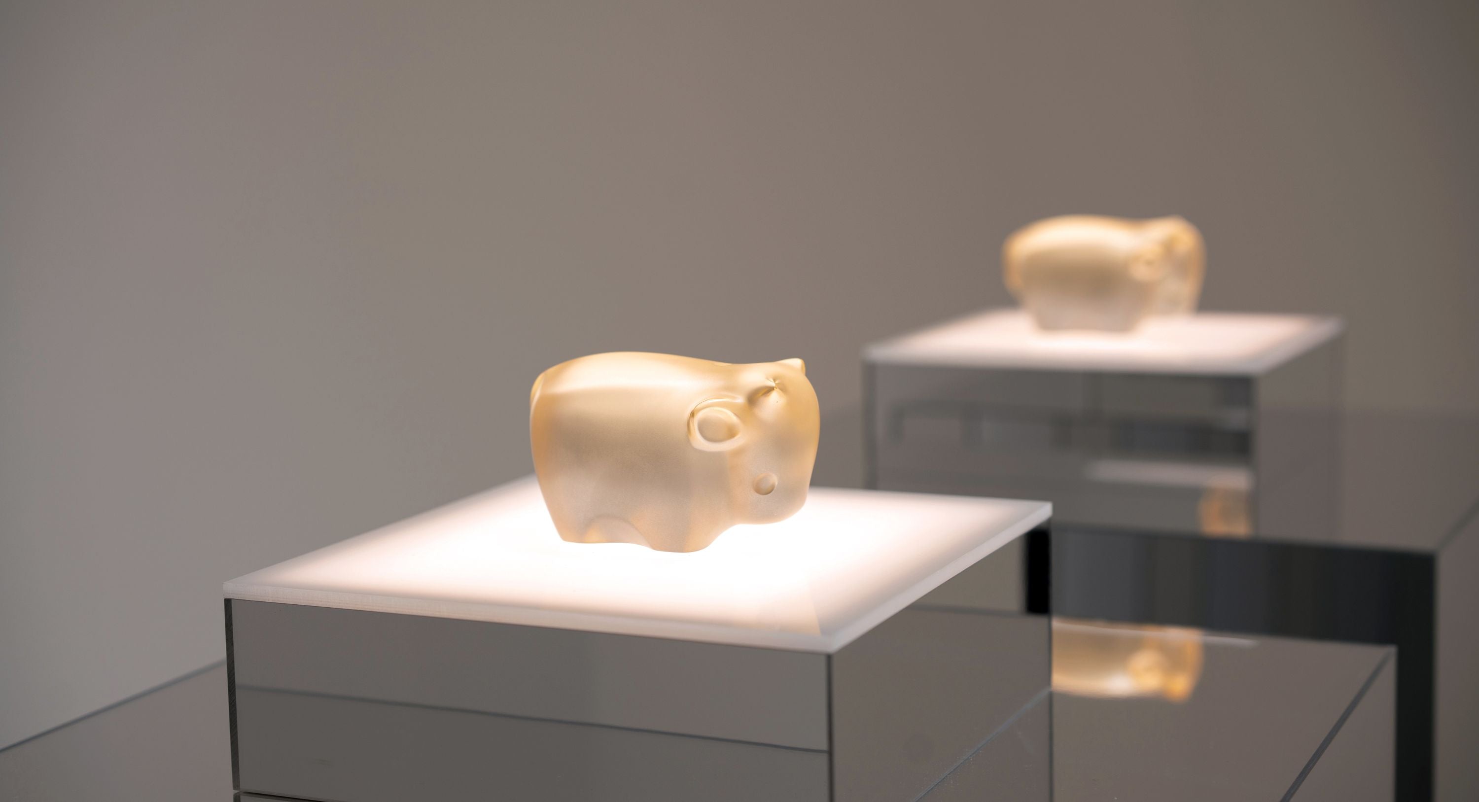 The Ox, an age-old emblem of strength and perseverance in China, is reimagined through the poetic lens of Han Meilin. The noble animal’s silhouette is transformed into a subtly abstract form. Named by the artist “Niu Wang Wang” (牛旺旺) — meaning “Flourishing Ox”— the sculpture carries a promise of abundance, luck, and prosperity.