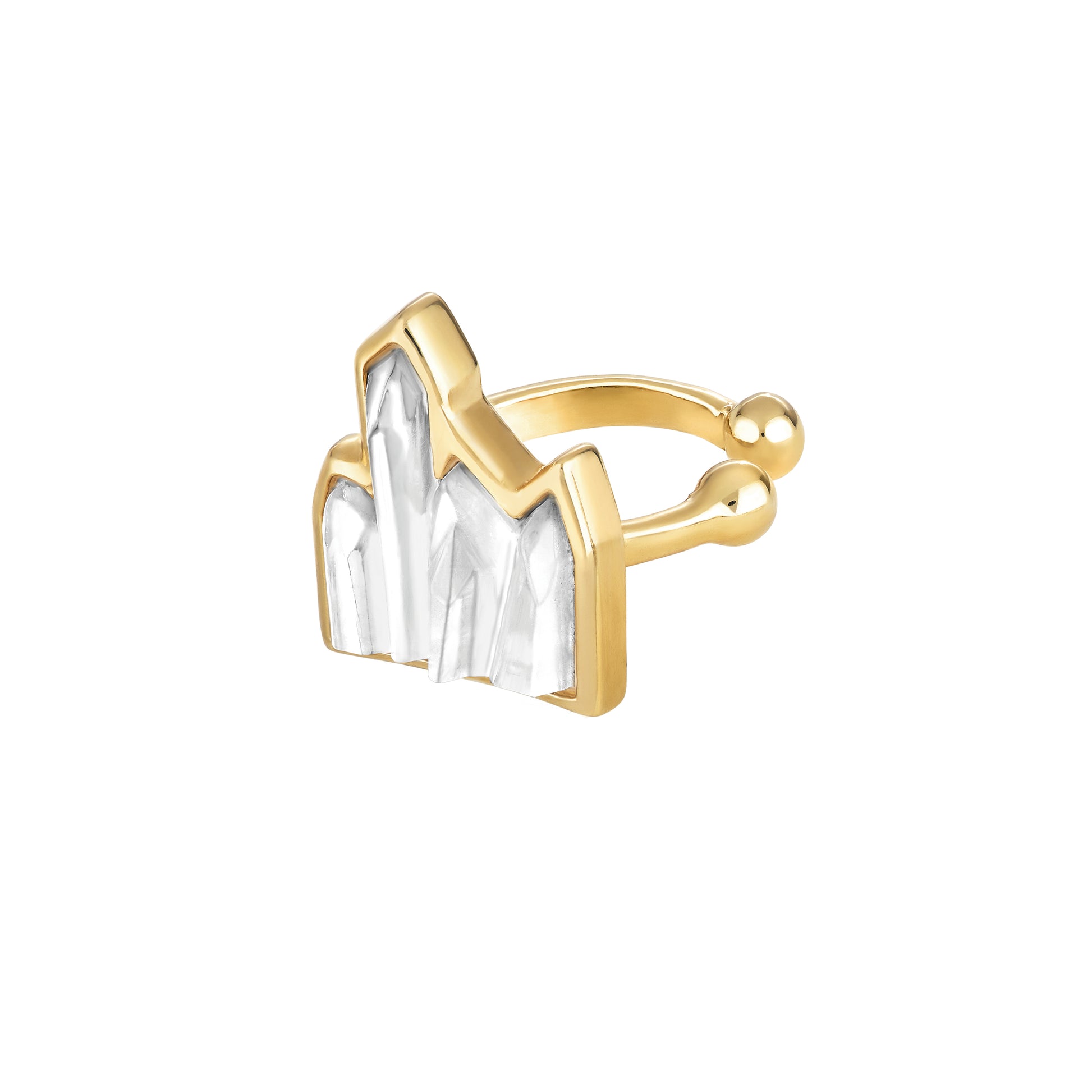 Unrestrained, this earcuff adds a touch of contemporary boldness; worn alone for a minimalist statement or combined with other pieces for effortless stacking. Lalique drew inspiration from minerals shaped by centuries to recreate their natural beauty in the Terramineral collection. A manufacturing feat, the fine metal frame perfectly embraces the delicately chiseled contours of the crystal, revealing its detailed reliefs.