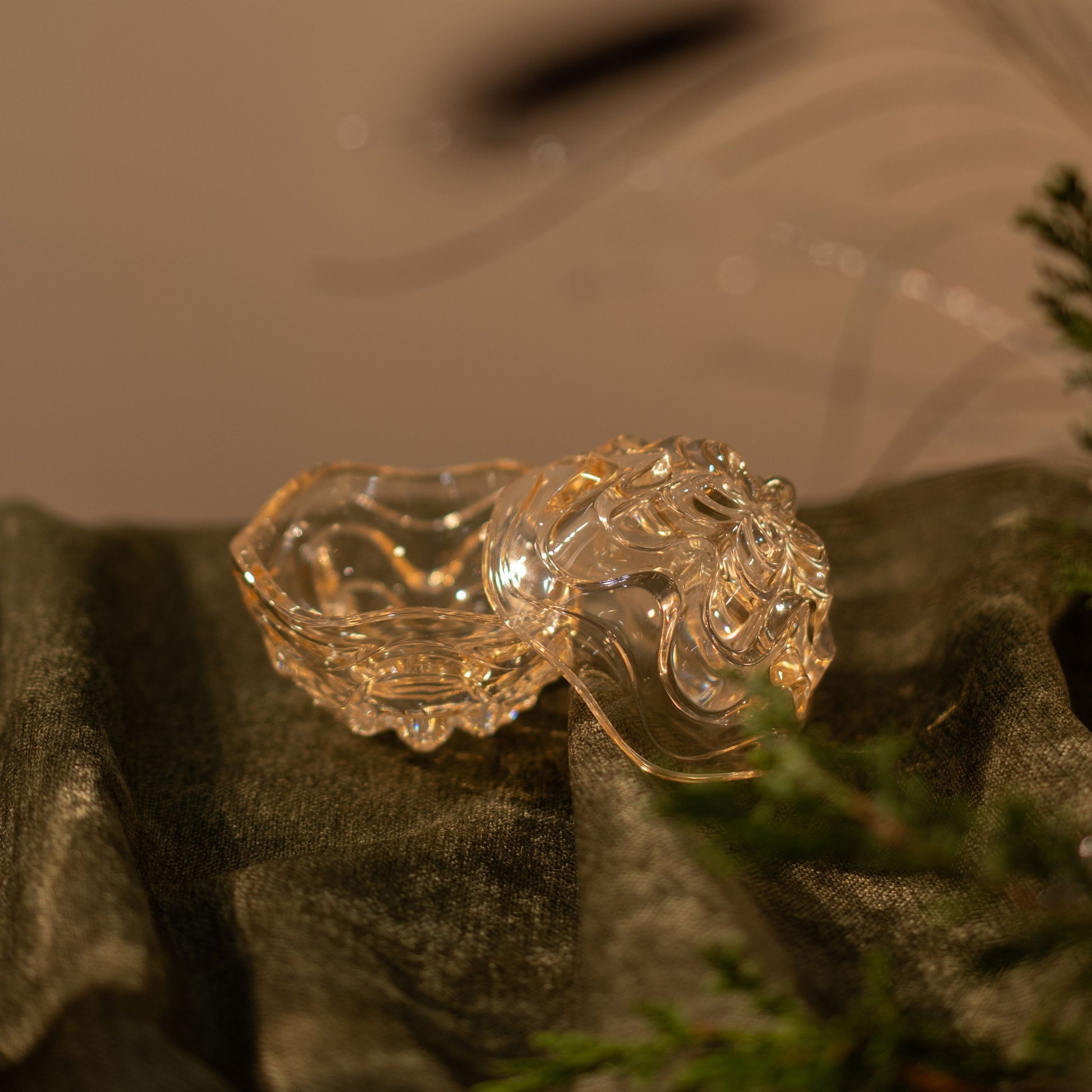 Crystal stretched and worked in its molten state becomes undulating waves of light delivering the subtle sensation of motion. Folding and unfolding, the lines draw parallels with the art of origami while the down and up strokes evoke feelings of many vibrations.