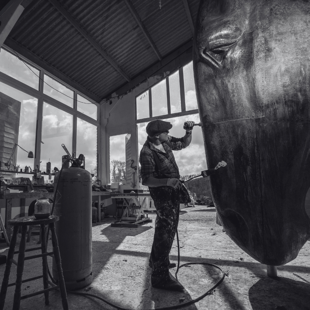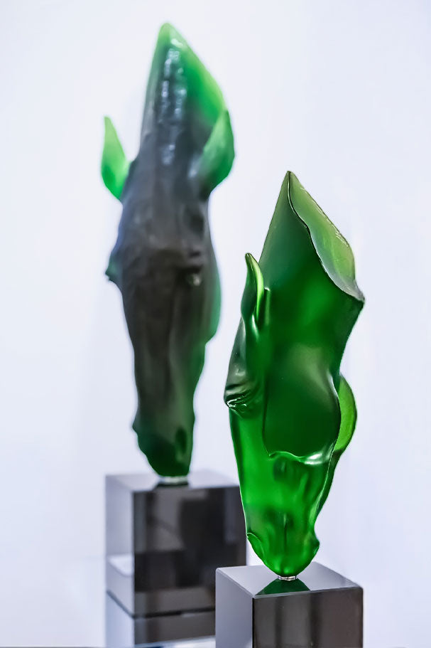 Né en 1963 et ayant grandi à la campagne dans le Hampshire, le Britannique Nic Fiddian-Green murmure à l’oreille du plus vieil ami de l’homme depuis plus de 35 ans de carrière. Dans la quiétude de son atelier avec vue sur la pleine campagne où il s’est installé dans les années 1990, il sculpte cette créature noble plusieurs heures par jour, cherchant à restituer sa force et sa majesté à l’échelle monumentale. Dessinateur et sculpteur hors-pair, Fiddian-Green est un spécialiste des formes équestres réalistes. Formé à la redoutable technique du moulage à la cire perdue, il conçoit ses moules en plâtre dans son atelier du Surrey et façonne ses immenses pièces dans sa propre fonderie. C’est là que Nic Fiddian-Green expérimente une palette de matériaux tels que le bronze mais aussi le plomb, le marbre, le cuivre, les pierres naturelles… Travailler le cristal est une première pour l'artiste.