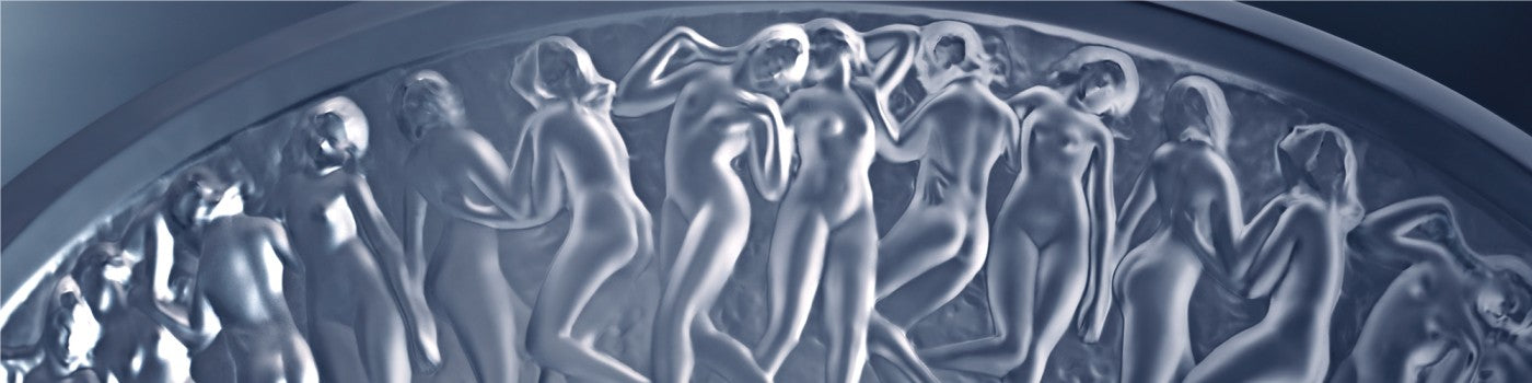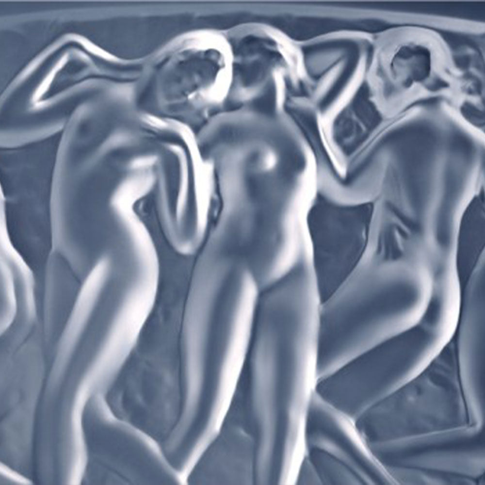 En 1927, l’imagination et le génie créatif de René Lalique donnent naissance au vase Bacchantes. Majestueuse ode à la féminité, la ronde de nus sculpturaux des pièces Bacchantes est emblématique du style Lalique.