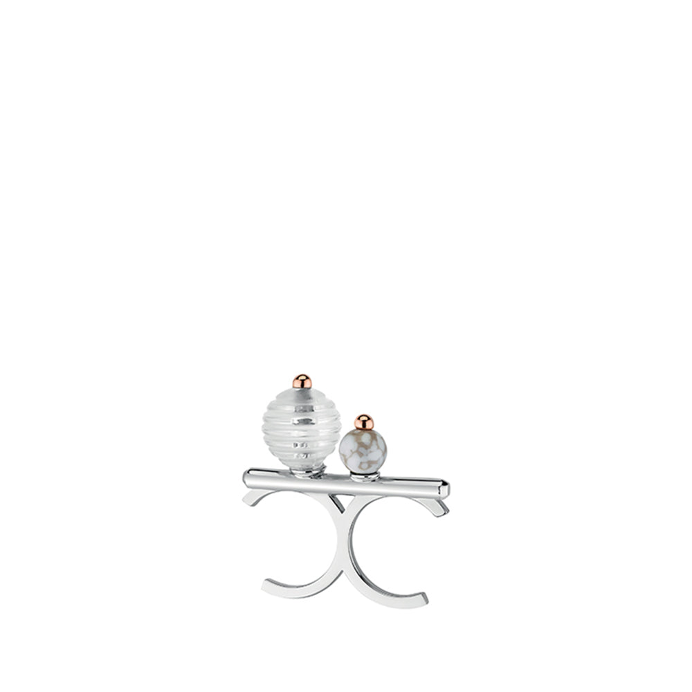 Cristal incolore et verre marbré, plaqué argent et or rose 18K