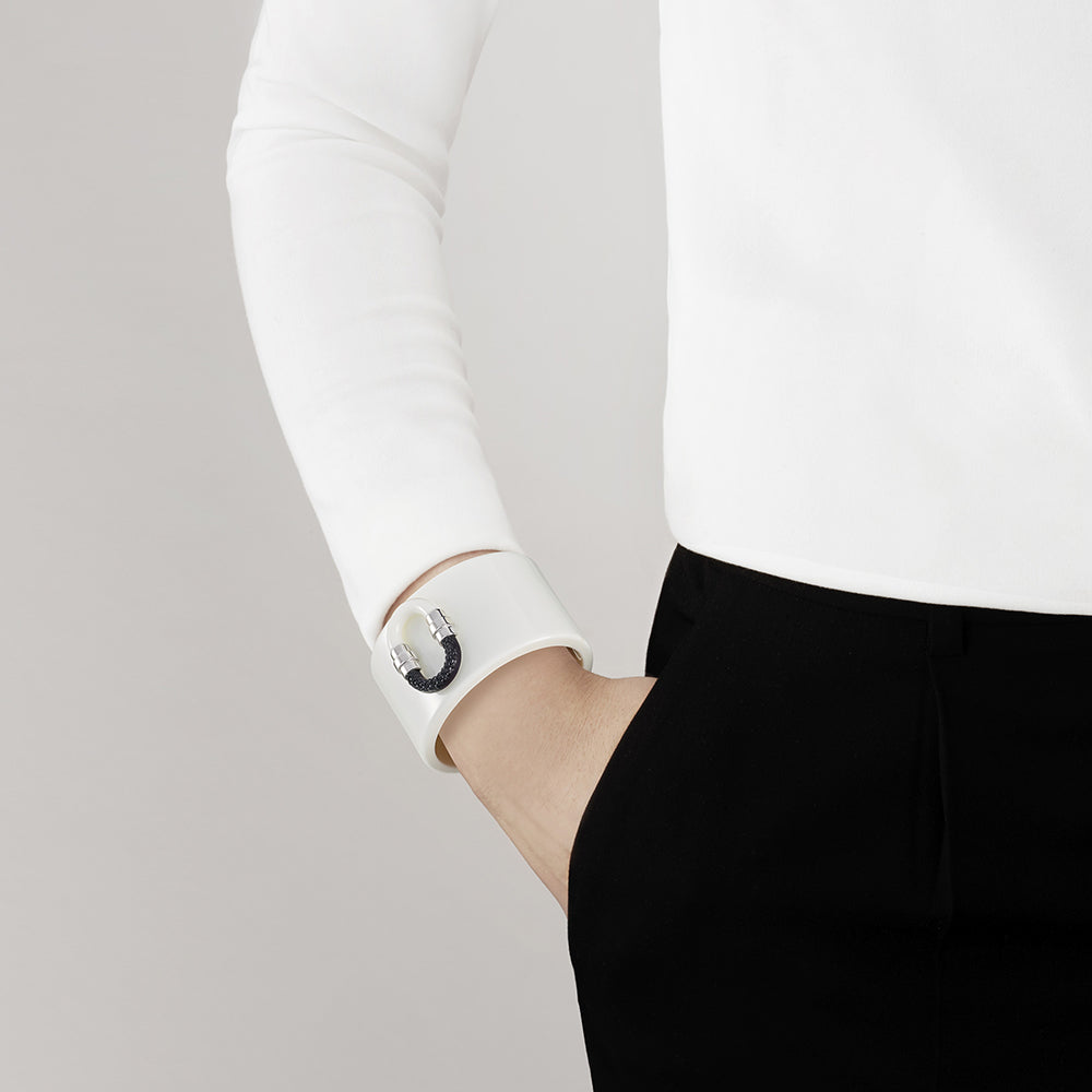 - Motifs en cristal noir Lalique satiné-repoli et résine blanche