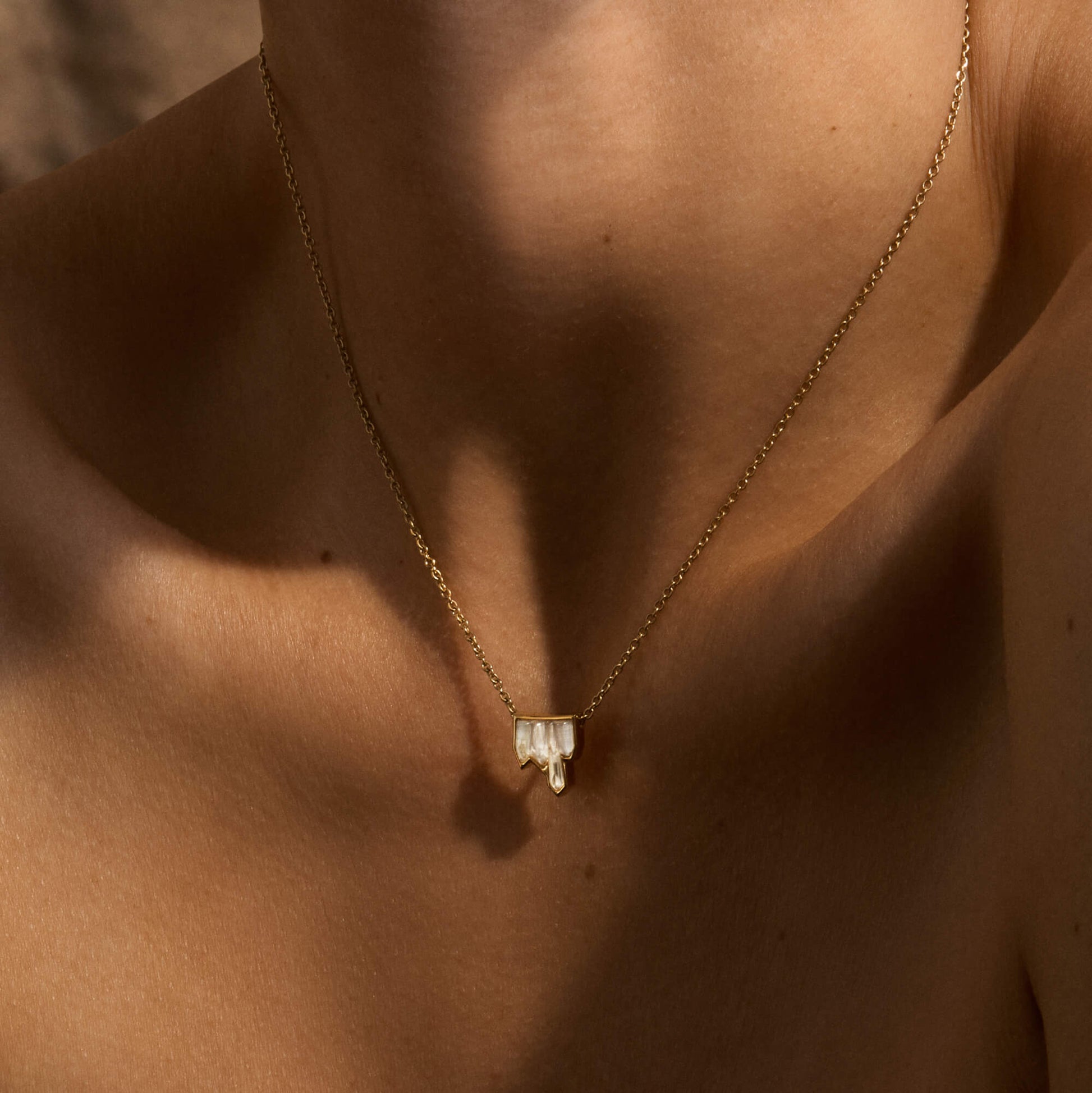 Délicat et lumineux, ce collier dévoile un cristal discret au bout d’une fine chaîne, comme une touche de lumière posée sur la peau. Lalique s’est inspiré des minéraux façonnés par les siècles pour recréer leur beauté naturelle dans la collection Terramineral. Prouesse de fabrication, la fine monture de métal épouse parfaitement les contours délicatement ciselés du cristal, révélant ses reliefs détaillés.
