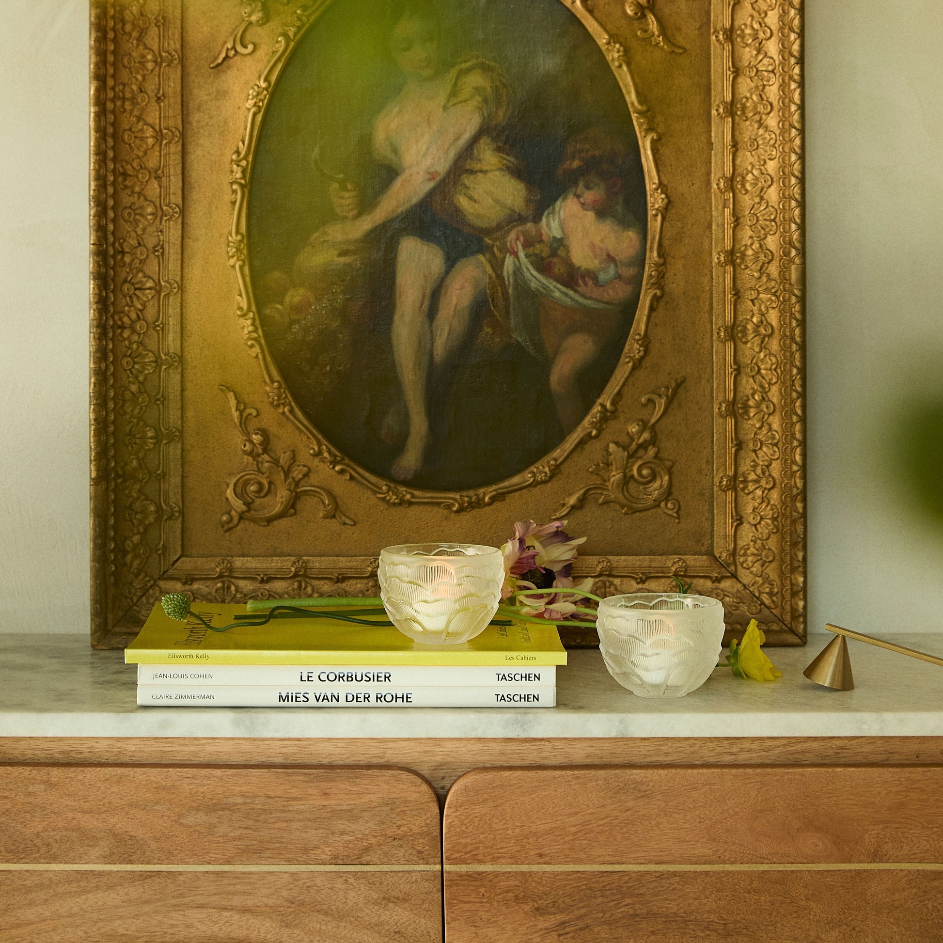 La douce lumière de la bougie filtre à travers les pétales de cristal satiné-repoli finement ciselés de ce photophore, à jouer seul ou en accumulation.