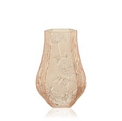 Légèreté, évanescence et modernité se conjuguent sur ce vase. La pureté du cristal répond à la sobriété des lignes de ces fleurs élancées. La floraison transparente, comme bercée par vent, scintille sur le cristal satiné.